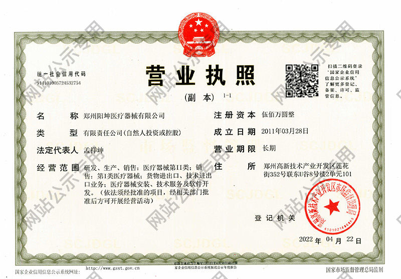 鄭州陽坤醫療器械有限公司是集研發、生產、經營、服務為一體的高科技新興企業。公司位于鄭州市高新技術開發區。總部擁有標準的生產廠房和產品研發基地。擁有一批既有理論又有豐富實踐經驗的知名專家、管理人才、科技人才和銷售服務人才,從而使公司具備了科學化、規范化的現代企業管理機制。形成了研發、生產、銷售、服務為一體的企業體系。